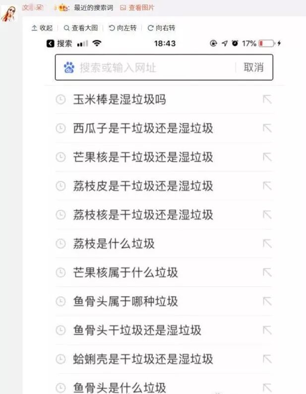 垃圾分类试行后,上海人民的搜索日常↓↓,干垃圾、湿垃圾傻傻分不清楚。