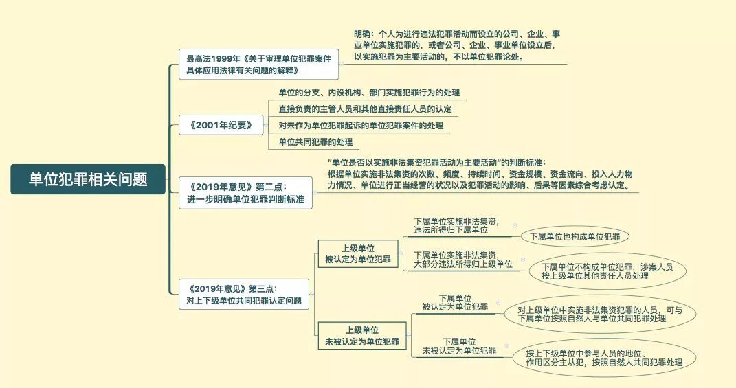 《2019年意见》对上下级单位可能构成共同犯罪的认定情形,根据非法集资案情不同进行了区分明确。与此同时,《2019年意见》对自然人与单位能否构成共同犯罪问题进行了明确。在之前的司法实践中,根据《2001年纪要》,其只明确单位与单位构成共同犯罪的处理,即应根据各单位在共同犯罪中的地位、作用大小,确定犯罪单位。司法实践中,上级单位构成单位犯罪,但下级单位以自然人犯罪处理的情况,能否按照共同犯罪处理,并未明确。对此,《2019年意见》第三点的第二、三种情形,明确了在上级/下级单位不构成单位犯罪的情况下,可以与下级/上级单位构成自然人与单位共同犯罪的情形,这对实践中类似情况的认定,提供了较为明确的参考标准。