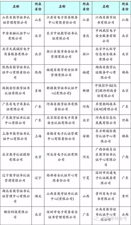【附录一: 可提供数字证书服务机构名单】