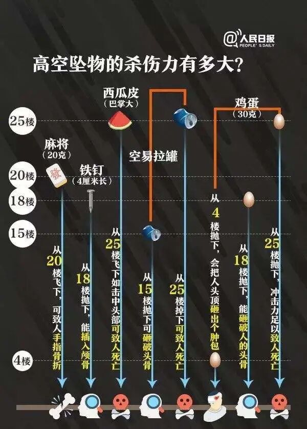 但是口吐芬芳是解决不了问题。我们还是要用法律规范我们的行为,保护我们的权益。2021年1月1日,全国人民翘首等待了70年的《中华人民共和国民法典》终于要实施了。 我们看看《中华人民共和国民法典》对于高空抛物作出什么规定: 第一千二百五十四条 禁止从建筑物中抛掷物品。从建筑物中抛掷物品或者从建筑物上坠落的物品造成他人损害的,由侵权人依法承担侵权责任;经调查难以确定具体侵权人的,除能够证明自己不是侵权人的外,由可能加害的建筑物使用人给予补偿。可能加害的建筑物使用人补偿后,有权向侵权人追偿。 物业服务企业等建筑物管理人应当采取必要的安全保障措施防止前款规定情形的发生;未采取必要的安全保障措施的,应当依法承担未履行安全保障义务的侵权责任。 发生本条第一款规定的情形的,公安等机关应当依法及时调查,查清责任人。 从上文来看,在无法查明的是谁高空抛物的情况下,依旧延续之前的侵权责任法中“一人抛物,全楼担责”的裁判思路。不仅如此,如物业或开发商,作为建筑物的管理人,也应该采取相应的保障措施,预防高空抛物的事件的发生,如工作没做到位,物业公司也要承担同样的责任。 由于高空抛物的特殊性,往往在事后很难查证谁是侵权人。因此仅靠公民个人的力量去查找侵权人,是远远不够的。民法典就特别规定,发生高空抛物后,公权力要及时介入,查找侵权人。对于那些情节严重的,依照《最高人民法院关于依法妥善审理高空抛物、坠物案件的意见》中的规定,可以以危险方法危害公共安全罪、过失致人死亡罪、过失致人重伤罪等罪名依法追究相应人员的刑事责任。 2018年发生的苹果砸伤女童一案,就是公安机关根据苹果上残留的生物信息,再调取楼上住户的生物信息逐户进行比对,才最终确定抛物者是一名11岁的女生。如果不是公权力介入,仅靠公民个人的力量是很难查清抛物者是谁。但由于抛物者只有11岁,未到刑事责任年龄,故无法追究其的刑事责任,只能向抛物者的监护人进行民事索赔。 最后,对于那些故意高空抛物者,只能送下面的一张图给他们: