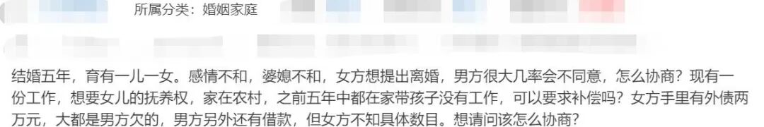 结婚五年,育有一儿一女。感情不和,婆媳不和,女方想提出离婚,男方很大几率会不同意,怎么协商?现有一份工作,想要女儿的抚养权。家在农村,之前五年中都在家带孩子没有工作,可以要求补偿吗?女方手里有外债两万元,大都是男方欠的,男方另外还有借款,但女方不知具体数目。请问该怎么协商?
