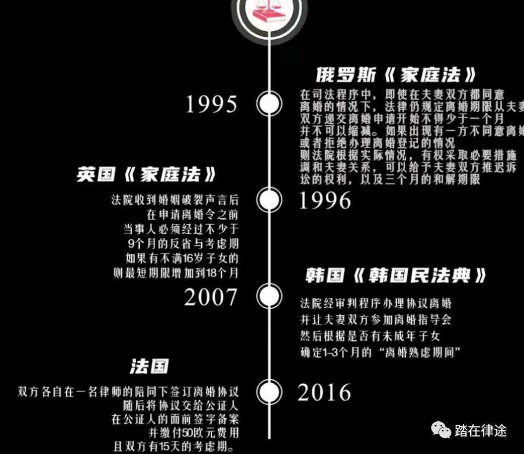 俄罗斯是最早开始实行“离婚冷静期”的国家,此后的美国韩国、英国、法国等国家也都在实行该制度。