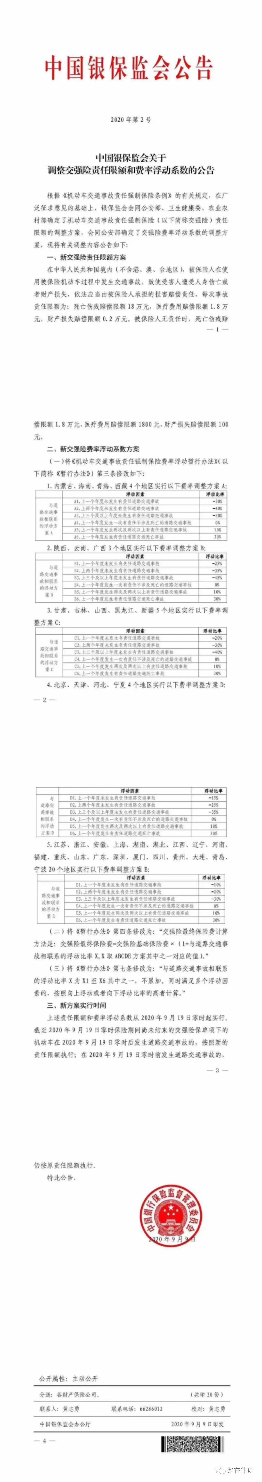 交强险责任限额大幅度提升 有责总责任限额从12.2万元提高到20万元,其中死亡伤残赔偿限额从11万元提高到18万元,医疗费用赔偿限额从1万元提高到1.8万元,财产损失赔偿限额维持0.2万元不变;无责任赔偿限额按照相同比例进行调整,其中死亡伤残赔偿限额从1.1万元提高到1.8万元,医疗费用赔偿限额从1000元提高到1800元,财产损失赔偿限额维持100元不变。 车损险扩大,盗窃、涉水都能赔 新的机动车示范产品的车损险主险保险责任增加了机动车全车盗抢、地震及其次生灾害、玻璃单独破碎、自燃、发动机涉水等保险责任,删除了事故责任免赔率、无法找到第三方免赔率等免赔约定,删除了实践中容易引发理赔争议的免责条款,为消费者提供更加全面完善的车险保障服务。 丰富商车险产品 增加了驾乘人员意外险产品,包括代送检、道路救援、代驾服务、安全检测等内容的车险增值服务特约条款,为消费者提供更加规范和丰富的车险产品及服务。 多年不出险,交强险最高优惠50% 在提高交强险责任限额的基础上,结合各地区交强险综合赔付率水平,在道路交通事故费率调整系数中引入区域浮动因子,浮动比率中的上限保持30%不变,下浮由原来最低的-30%扩大到-50%,提高对未发生赔付消费者的费率优惠幅度。对于轻微交通事故,鼓励当事人采取“互碰自赔”、在线处理等方式进行快速处理,并研究不纳入费率上调浮动因素。 三者险限额提升,最高可赔1000万 结合经济社会发展水平,支持行业将示范产品商业三责险责任限额从5万—500万元档次提升到10万—1000万元档次,更加有利于满足消费者风险保障需求,更好发挥经济补偿和化解矛盾纠纷的功能作用。