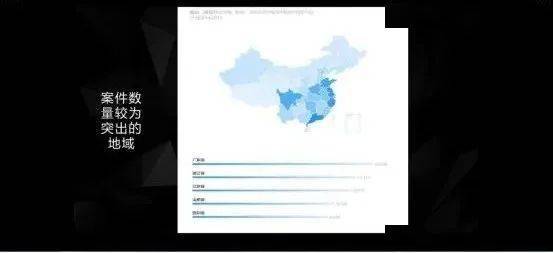 可以从图表得知,案件数量较为突出的地域,广东省排名第一,四川省排名第五。