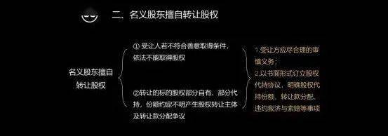 主要的争议点大概有两类, 第一类是,名义股东未经授权擅自转让代持的股权,然后实际权利人对标的股权提出主张。这种情况下,如果受让方不符合善意取得条件,依法就没有办法取得股权。