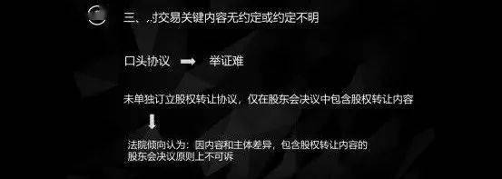 这种情况出现了争议就是非常难取证。比如说,在股权转让的时没有单独签订股权转让协议,仅仅是在标的公司股东会决议当中包含了股权转让的部分内容,可能会涉及到转让的金额和转让的比例等。由于这整个交易主体股权股东会决议、股权转让协议,主体和内容都是完全不同的。