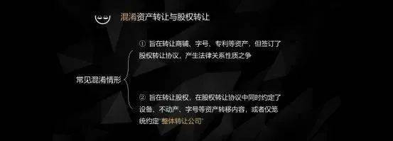 还有一种情况是, 本来是想转让股权,但因为混淆或者其他原因,在股权转让协议里面又同时约定了要转让设备,转让不动产,内容非常笼统。在实践当中认定是非常困难的,双方对此的争议也会比较大。