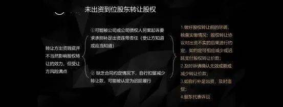 未出资到位包括了完全没有出资,出资不实,或者抽逃出资等情形,但理论上讲没有完全出资到位的股东,其实仍然是具有可转让性的,称为:出资的瑕疵并不完全,并不必然影响股权转让协议的一个效力。但风险也是比较明显的, 风险的根源在于,双方在对标的股权进行前期审查的时候,审查的力度不足。在之后履行的时候才发现整个股权有未履行出资或者抽逃出资的瑕疵,之后再起诉要求解除撤销或者减少股权转让价款。
