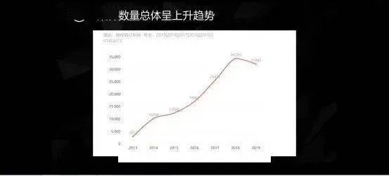 通过案例库进行检索,选取了2013年到2019年的完整数据,总量大概是十三万多件。整个案件数量是呈逐年上升的趋势,特别是2013到2014年,一年之内增长了三倍多。