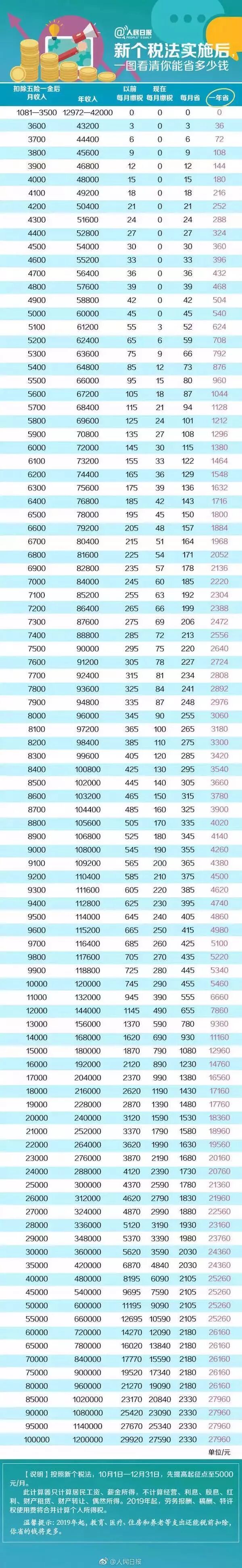 按照新个税法,一年你能省多少钱: